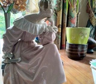 FIGURINE Femme Assise, pensive, romantique , avec livre ouvert .Porcelaine LIADRO (Espagne) Pièce de collection impeccable. Coloris blanc et rose Hauteur 3Ocm./Largeur 20cm. Me