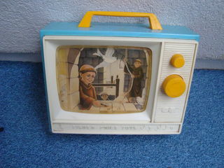 vend 30 euro Vintage Fisher Price télé musical année1964 Frère Jacques et sur le pont d avignon le tout en bonne état cosmétique et de marche pas de casse le socle est en bois il