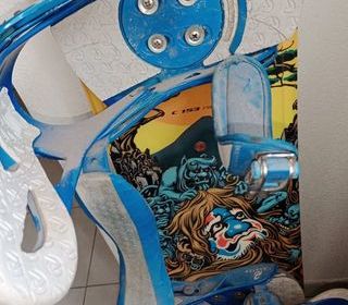 Snowboard DYNASTAR Gourou - vintage (165 cm) avec fixations Elfgen Longueur du snowboard : 165 cm En bon état La semelle et les carres sont en bon état. pour surfer à l