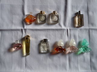 LOT 1 : 70 € les 10 flacons pleins (contenance 5 ml en moyenne), sans boîtes d'origine - LALIQUE : (H) Le baiser / Cheval / Pour Homme - DALI : Le baiser (3x) - DALI : Soleil