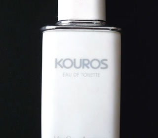 Flacon original de l'Eau de Toilette Kouros d'Yves Saint Laurent (vide), il nous vient des années 1990. Flacon de 100 ml. Idéal et original comme décoration de Salle de Bains o