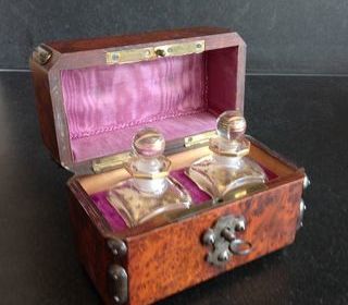 Très joli coffret en parfait état contenant deux flacons Largeur 14 cm Hauteur 11 cm Profondeur 8 cm