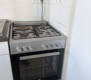 Partie Four : four électrique avec une plaque et une grille avec toutes options (grill, chaleur tournante etc) 5 étages dans le four pour la plaque/grille Compartiment en dessou