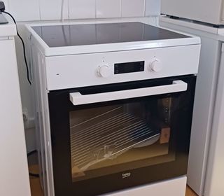 Cuisinière INDESIT mixte (3 feux gaz, 1 électrique, four chaleur tournante 73 L + grill) d'occasion. Peu servi (usage familial limité à 1 personne). Modèle à consulter sur internet