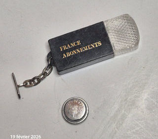 Porte clefs France Abonnement avec lampe, vintage Il faut remettre une pile neuve, mais il fonctionnait Il manque aussi l'anneau, mais cela se change ou