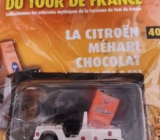 Dans son emballage d'origine 61 véhicules publicitaires du Tour de France collection Atlas dont un collection Hachette Hotchkiss Perrier + 1 vélo Gitane 1/43 e Bernard Hinault .