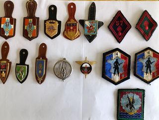 Lot état neuf militaire ( Armée française ) 5 divers écussons en tissus . 4 euros piéce 8 différentes pucelles. 5 euros piéce 1 insigne de béret . 5 euros 1 insigne