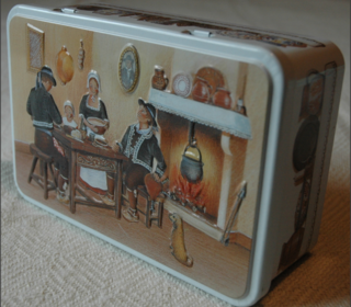 Particulier vends une superbe boite rectangulaire en métal, décor en relief et illustrée sur le thème "Ancien intérieur breton" Description : - Boîte rectangulaire métal vinta