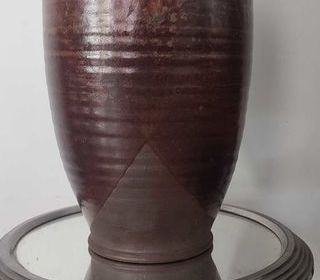 Grand vase en grès tourné signé en creux Domjean Hassan ( Françoise et Issan Hassan sont un couple de potiers ayant ouvert un atelier en 1974 à Domjean en Norman