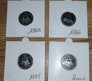 Bonjour à vendre 4 Pièces de 1 / 2 Franc BE Cote des 4 pièces 85 Euros Paiement par chèque ou virement bancaire Frais d'envoi 4 Euros en lettre suivie