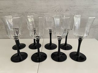 Ancien Service de Huit Verres à Pieds Style Calice Vin, Eau ou Autres... Cristal Bicolore Pieds Noir Ce Sont des Verres à Vin Élégants Dans sa Forme de la Gamme Arcoroc Octime