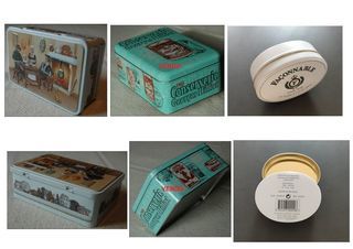 Particulier vend un ensemble vintage rare de deux boites publicitaires neuves en métal, peintes et décorées. 1 - Boîte rectangulaire métal vintage, - Production, collecti