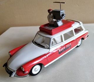 R.T.L. suit, en cette année 1963, le tour de France. Cette réplique au 1:43e possède un coffre arrière ouvrant, la caméra et le cameraman pivote sur le toit du véhicule. C'est de