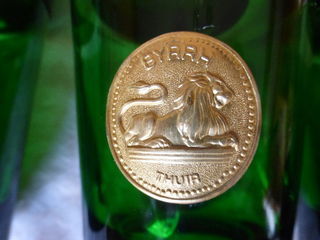 Ensemble de 6 verres à eau publicitaires, de couleur verte et or, de la marque BYRRH & DUBONNET (Italie). Ces verres ont été créés, dans les année 60, à THUIR, Pyrénées-Orientales
