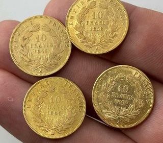 Lot+4+10+francs+or+napoléon+lll. 1855+A 1858+A 1859+B 1860+A Vente+au+détails+possible+320€+pièces,+oà¹+1100€+le+lot. Remise+en+main+propre+sur+Strasbourg+ou+bien+par+envoie+