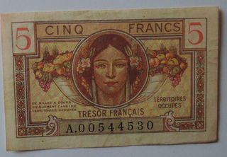 Billet de 5 francs "territoires occupés" parfait état. Aucune marque.TB+