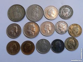 Lot de 14 pieces Suisse Helvetia 1 pièce 10 rappen 1930 B 2 pièces 1 franc 1968 B 1 pièce 5 rappen 1989 B 1 pièce 5 rappen 1985 B 1 pièce 1/2 franc 1974 B 1 pièce 5 rap