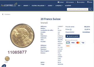 Période : Confédération helvétique Graveur : Albert Walch, Christian Bûhler et Karl Schwenzer Ateliers : Berne ?Suisse) Nombre de frappes : 3 372 000 Poids : 6.45 g Région d'or