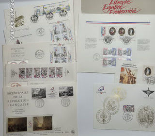 souvenirs philatéliques du bicentenaire sur la révolution française, 1989 Lot de 7 documents et enveloppes du premier jour d'émission, elles sont numéro