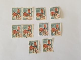 Timbre france Coq de Decaris 0F30- 1962 - lot 0.30 euro ou 0.03 euro à l'unité par 2 attaché 0.06 Marseille 9 eme 1 euro de frais de port attention envoi que pour 1.50 euro de