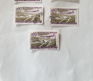 Timbre france Aéroport Charles de Gaulle 1974 lot 0.27 euro ou 0.09 à l'unité Marseille 9 eme 1.10 euro de frais de port attention envoi que pour 1.50 euro de commande mini