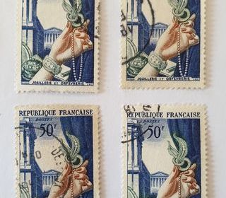 Timbre france Joaillerie et Orfèvrerie 1954- lot 0.24 euro ou 0.06 euro à l'unité Marseille 9 eme 1 euro de frais de port attention envoi que pour 1.50 euro de commande mini
