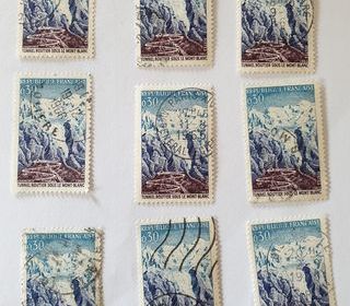 Timbre france Inauguration du tunnel routier sous le Mont-Blanc - (1965) oblitérés - lot 0.50 euro ou 0.06 euro à l'unité Marseille 9 eme 1 euro de frais de port mais envoi à