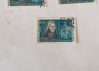 Timbre france Centenaire de la naissance de Sainte Thérèse de l'enfant Jésus 1973 - 0.13 euro Marseille 9 eme 1.10 euro de frais de port attention envoi que pour 1.50 euro de co