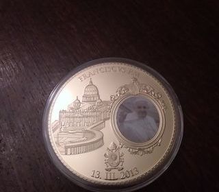 vends 1 médaille du pape Francois premier etat neuf diametre 70 mm emise lors de son élection le 13 mars 2013