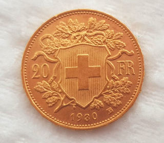 Période : Confédération helvétique Graveur : Albert Walch, Christian Bûhler et Karl Schwenzer Ateliers : Berne ?Suisse) Nombre de frappes : 3 372 000 Poids : 6.45 g Région d'or