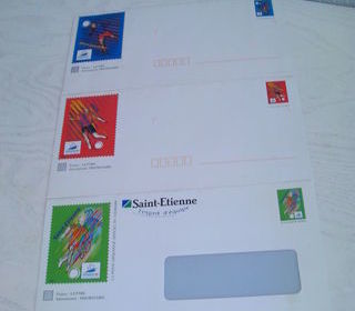 3 ENVELOPPES pré-timbrées FOOT FRANCE 1998 - non oblitérées 1 enveloppe fenêtre ST ETIENNE 1 enveloppe LENS 1 enveloppe MONTPELLIER 5€ l'une 1 enveloppe pré-timbrée et obl