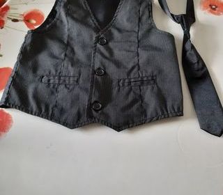 gilet pour sous costume et cravate noire boutonnage devant et 2 petites fausses poches cravate avec scratch