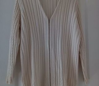 gilet long crème marque Mandoline taille M en très bon état // fermeture zip // col V // matière coton acrylique Dimension longueur milieu dos 70 largeur poitrin
