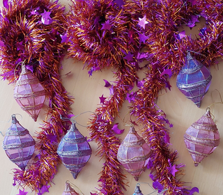 Lot de décorations de Noël Pour donner du peps à votre sapin cette année , je vous propose : 3 guirlandes fuchsia et cuivré munies de petites décorations : lunes, étoiles