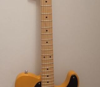 La Squier Sonic Telecaster, configuration SS, touche érable, pickguard noir, finition butterscotch blonde est un modèle sorti en mars 2023 qui offre un vent de fraîcheur avec de no
