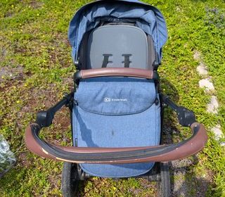 Poussette en très bon état avec quelques traces d'usure sur la poignée en similicuir. - Nacelle et poussette en un - Grandes roues gonflables - toutes amorties - Facile à plier
