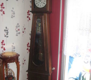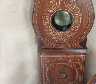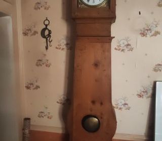 Vend une ancienne horloge comtoise F Romanet Morbier qui se remonte avec sa clé, fonctionne correctement , sonne les heures. A prendre à Racquinghem, paiement en espèces
