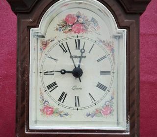pendulette horloge posée en pvc imitation bois. fonctionne parfaitement avec 1 pile fournie