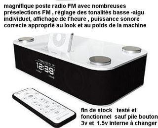 radio réveil stéréo a entrée auxiliaire jack 3,5MM AVEC antenne à fil, bloc d'alimentation secteur et télécommande à pile bouton 3V MATÉRIEL VOLUMINEUX ET LOURD COLIS PO
