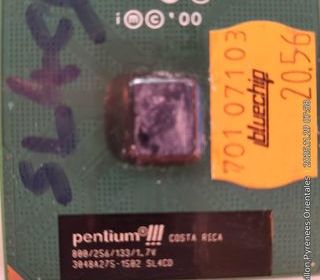 Vends 1 Micro-Processeur" Vintage " CPU Pentium III à 800Mhz (SL4CD) - Bus 133Mhz - L2 Cache 256Ko - Socket 370. A titre d'info, si vous m'achetez un lot de produits, j'offre une