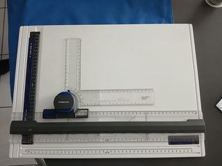 Planche à dessin A3 en plastique anti-choc, indéformable et lavable, avec règle parallèle et fixe-support, modèle Steadtler 661 A3 ST, Une équerre-rapporteur 90° pivotante à doubl
