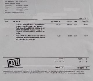 14 pouces, AMD Ryzen 5 Pro 3500U, 2,1 Ghz,8 GB DDR4,230GB SSD,Radeon Vega 8 Graphics, 1920x1080 FHD, Windows 11 Pro.