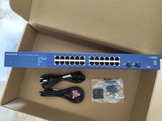 Pour cause de double emploi, je vends un switch Netgear de la gamme Pro Safe Smart Switch Manageable, modèle GS724T-400EUS. 24 ports Ethernet 10/100/1000Base-T + 2 ports SFP 100
