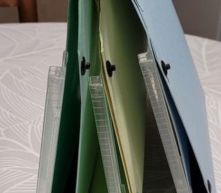 Vends Lot de 40 dossiers suspendus latéraux (lecture verticale) ou séparément, 3 coloris : 21 bleu ciel, 10 vert pastel et 9 jaune - format A4 (dimensions : 345 (l) x 275 (h) x 30