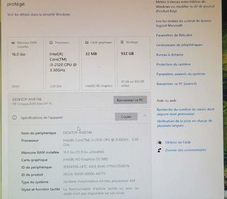 Ordinateur fixe de bureau windows 10, 16g de ram, processeur Intel