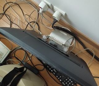 clavier ordinateur H.P gris et bande noire. 46 par 16 cm.; manque un pied. paiement en espèces, si remise en main propre