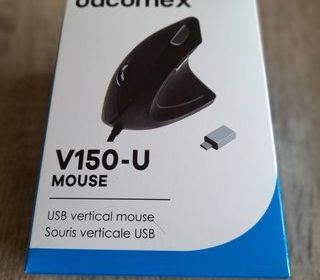 Souris, de la marque originale DACOMEX, V150-U, verticale - USB, de couleur noire, livrée avec un adaptateur USB Type-A vers USB Type C, 4 résolutions ajustables jusqu'à 2400
