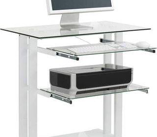 TABLE POUR ORDINATEUR? POUR POSER ET TRAVAILLER ?CETTE TABLE EN VERRE SECURITE QUI SE DEPLACE FACILLEMENT, CAR ELLE ROULE; bEL ESTHETIQUE