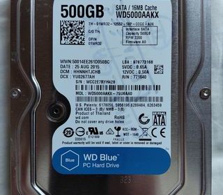 Disque Dur d'Occasion en parfait état de marche Western Digital WD5000AAKX-00ERMA0, DCM DHRNKT2MHB, 500GB SATA 3.5 Hard Drive.