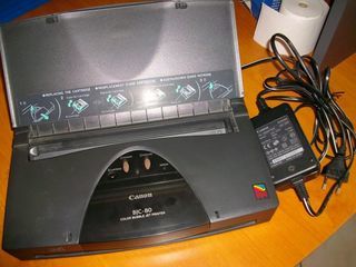 Imprimante portable CANON BJC-80 jet d'encre couleur pratiquement jamais servie sans fil , filaire avec 1 cartouche noire remise en mains propres